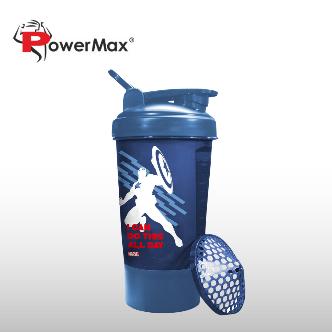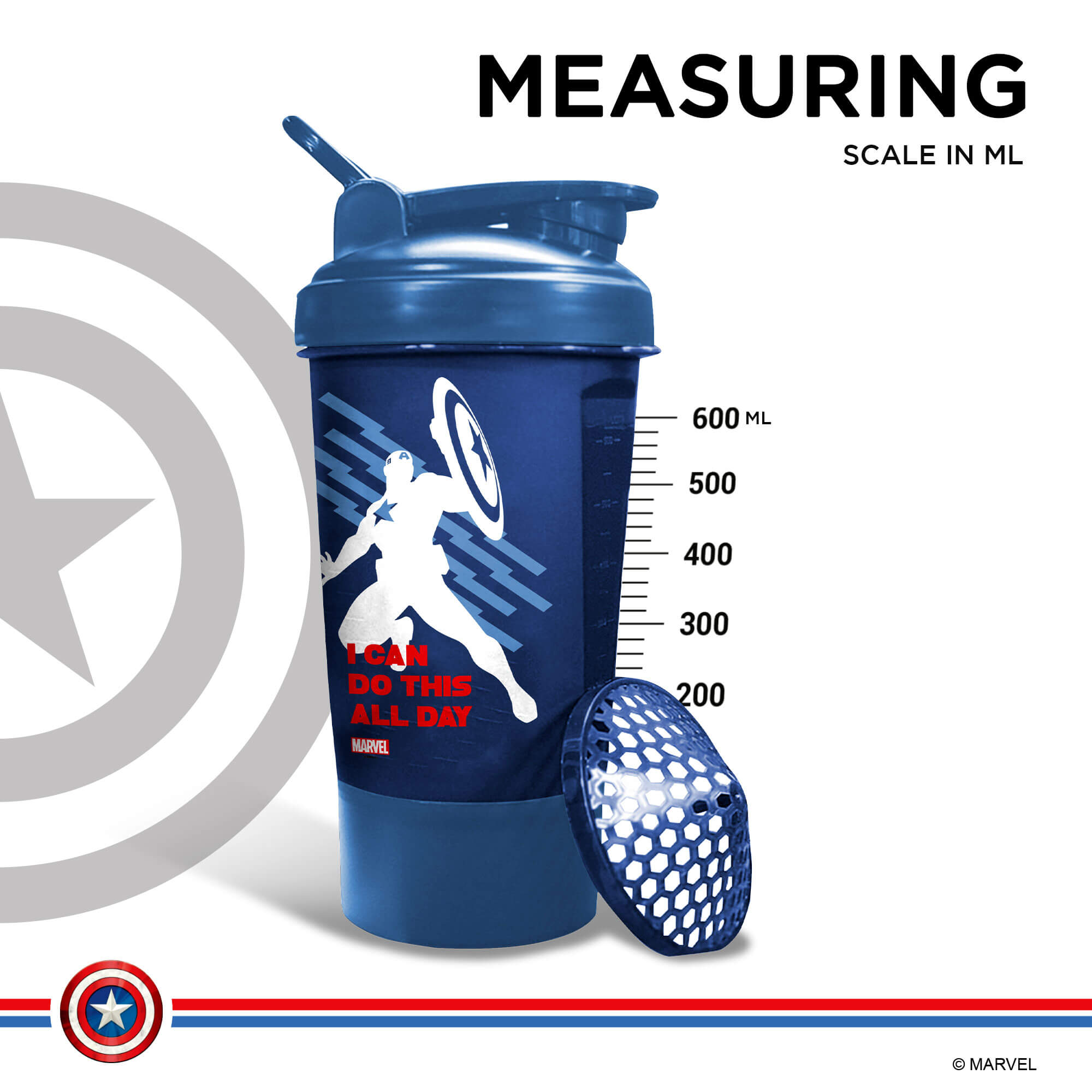 MSB-6S-CA-BL (600ml) Captain America Marvel Edition Protein Shaker Bottle with Single Storage