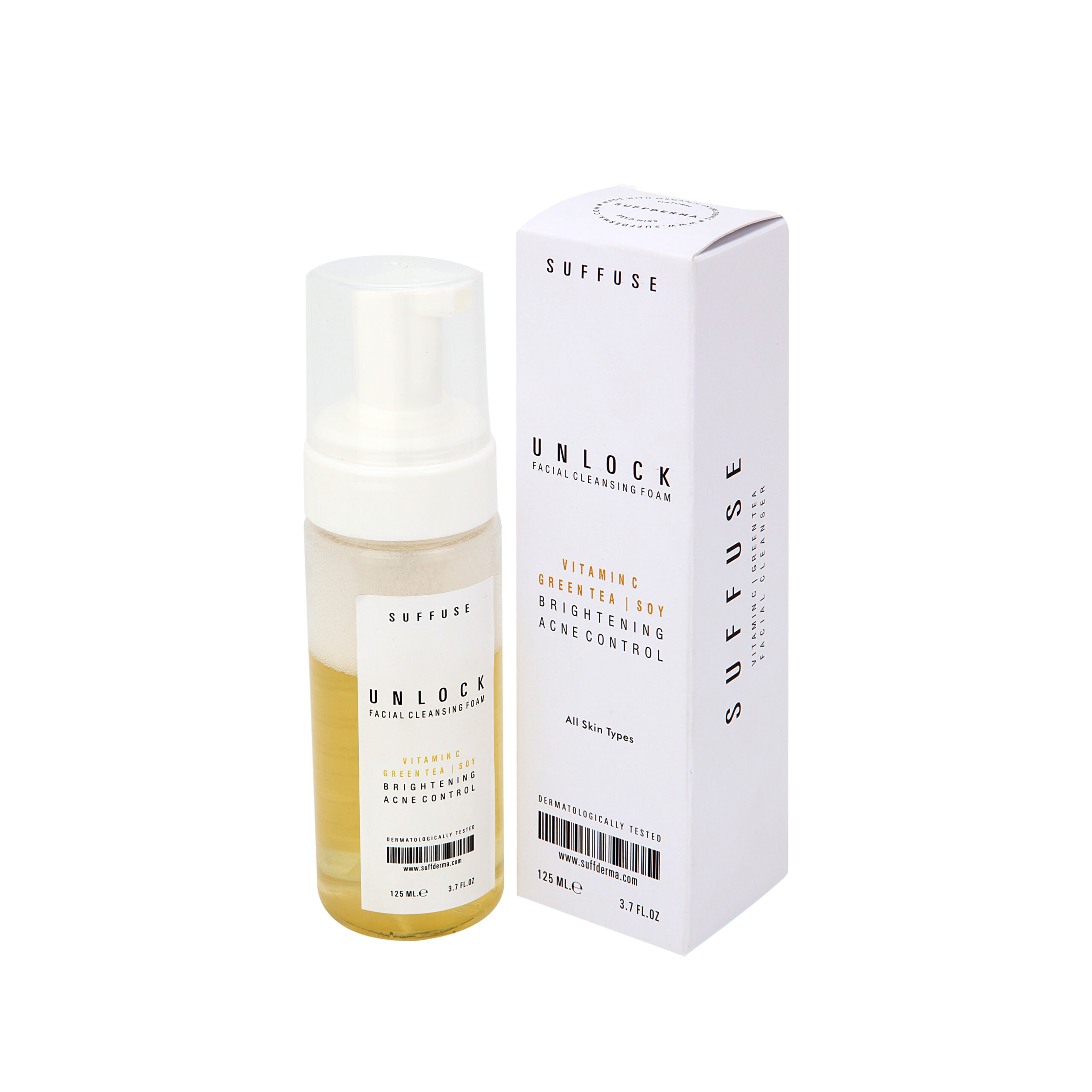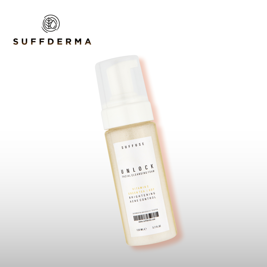 Suffderma Unlock foaming face cleanser is gentle, velvet and ultra-hydrating for your skin, as the wash transforms into the bubbly foam to condition and soothe without over drying to leave your skin clean & refreshed. It’s rich in Vitamin C, Green Tea Extract & Soy and other natural ingredients to effectively remove dirt and impurities from your pores while nourishing the effect on the rest of your skin.